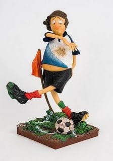 As with so many of Forchino's sculptures, the soccer player is a total buffoon. He's managed to not only whiff on his corner kick, but also get his legs tangled together something fierce.